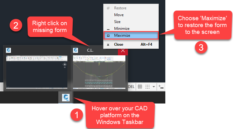 This solution shows how to find missing or lost forms by maximising them on screen.